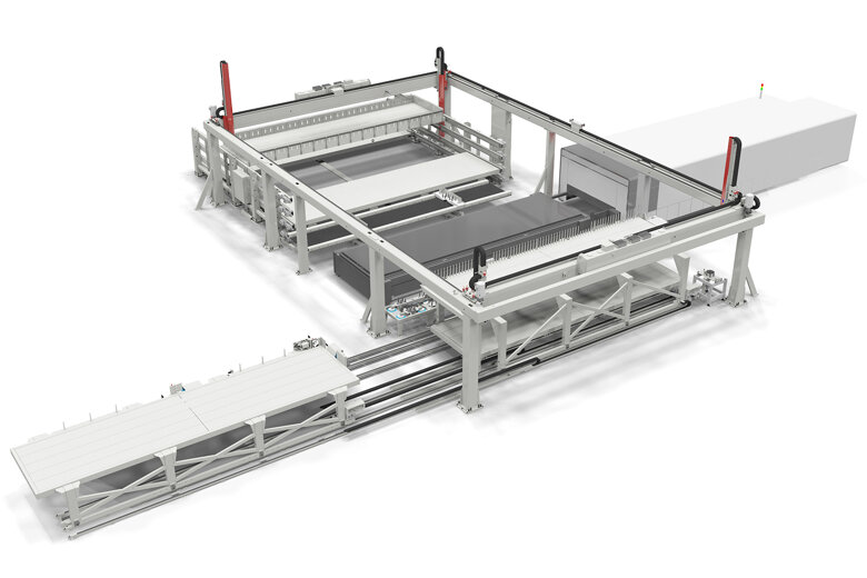 Het sorteersysteem voor geautomatiseerde verwerking van grote snijmachines. Het krachtige en robuuste 4-kops systeem brengt beheer van groot formaat platen op een ander niveau. Volledig geautomatiseerd inclusief laden, partpicking, sortering en skeletverwijdering.
